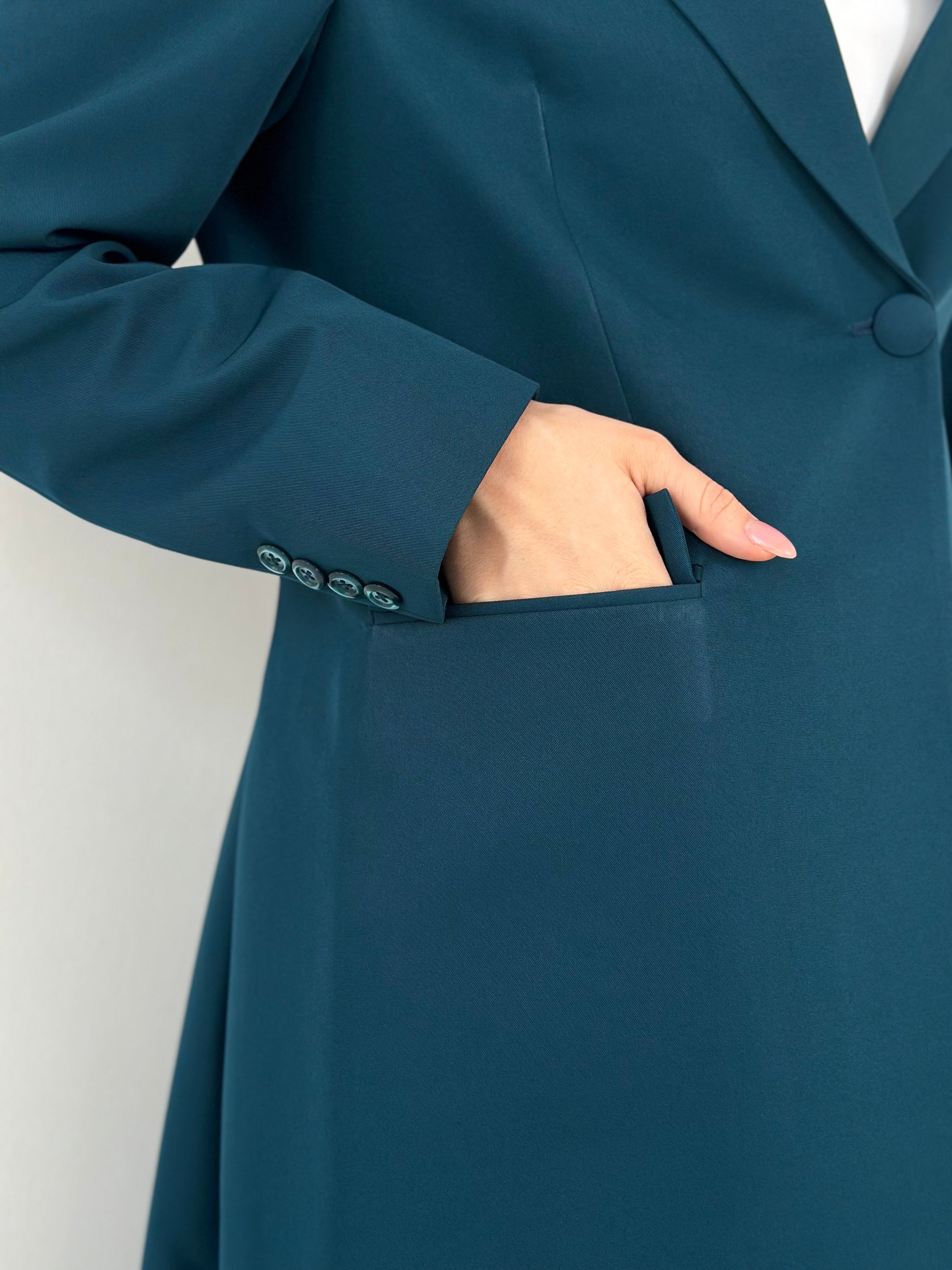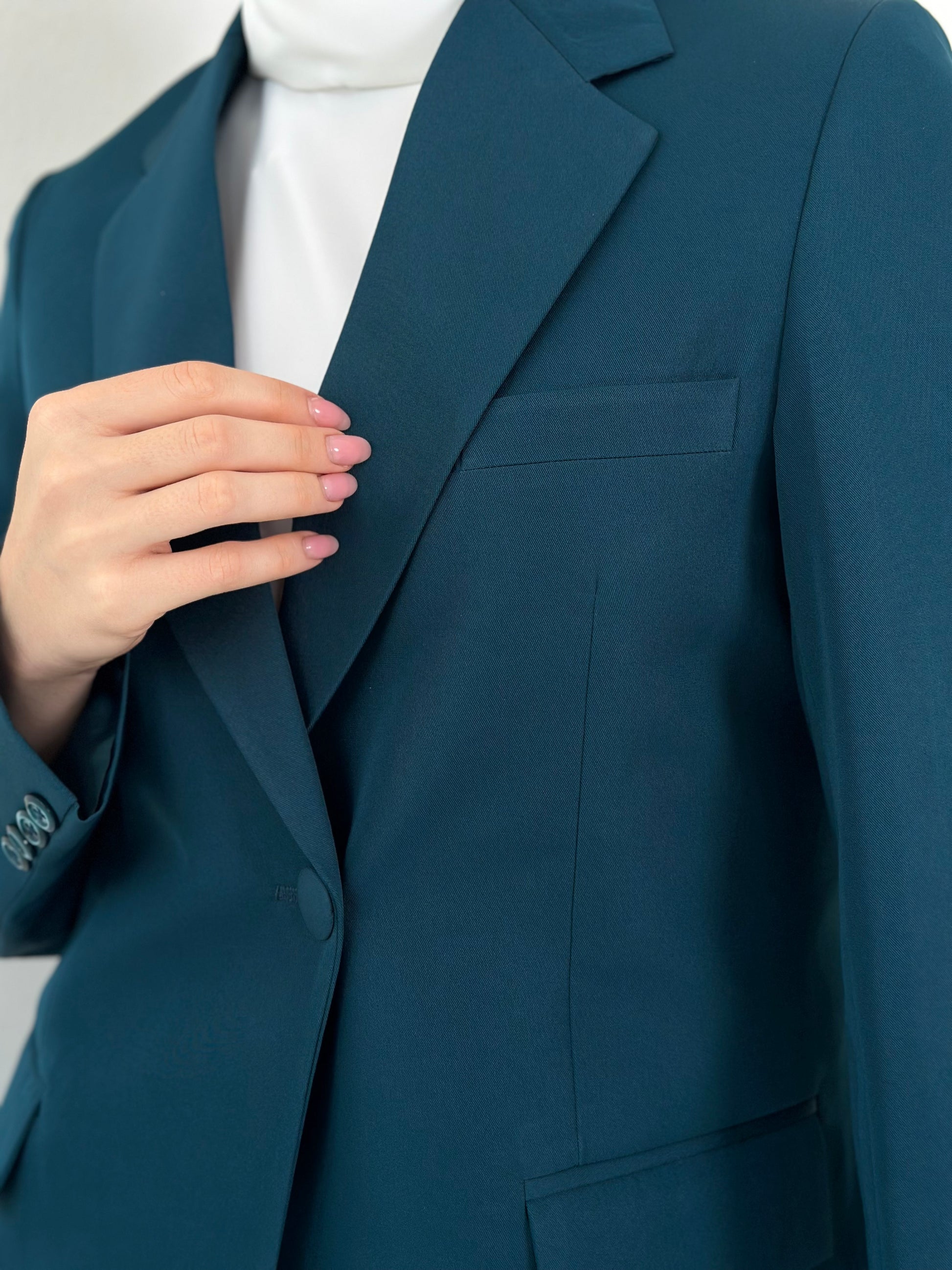 - بليزر من قماش الكريب الواقف بقصة أنيقة مرتبة.